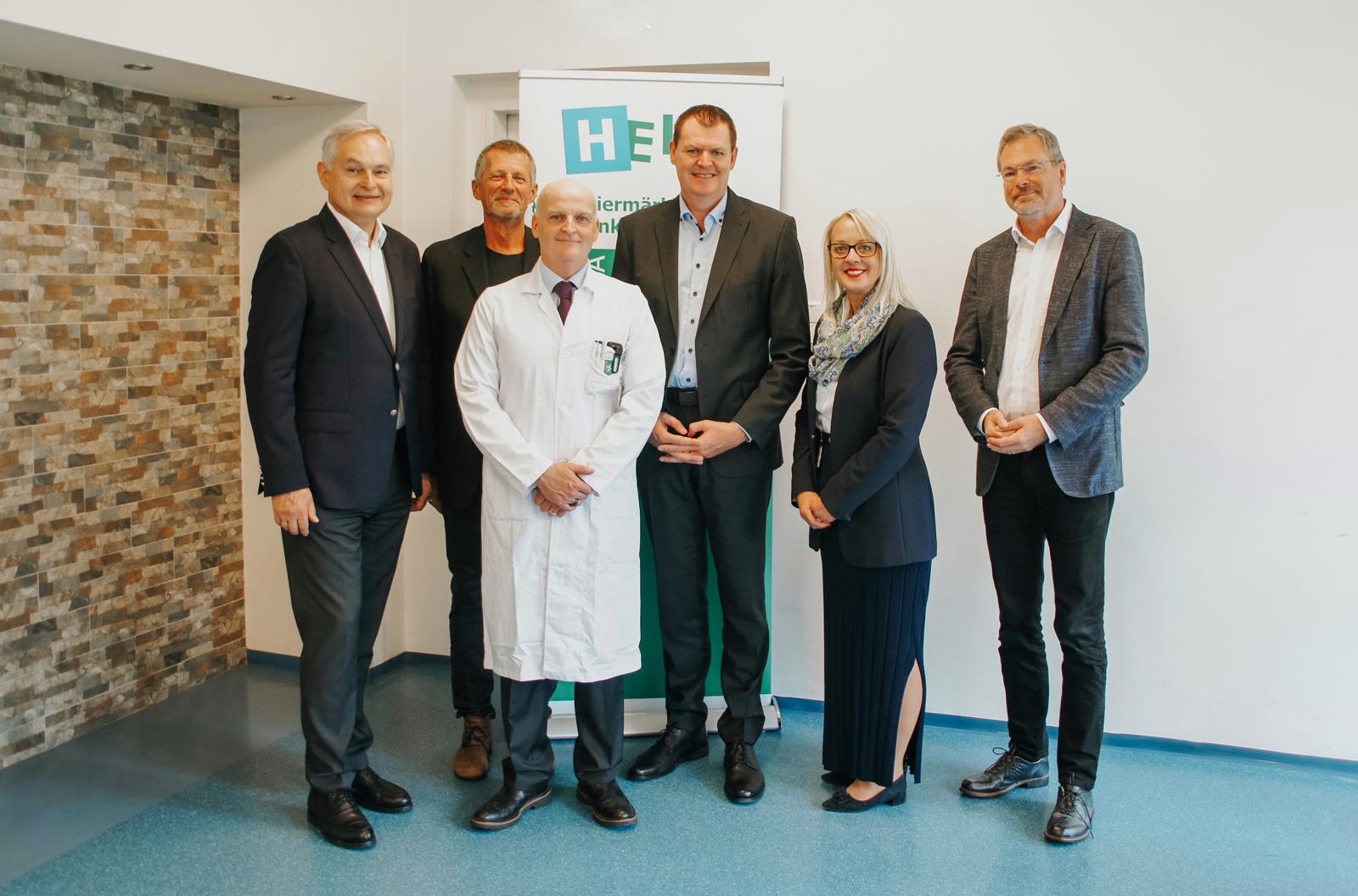 Am 6. Oktober 2025 stellten Landesrat Dr. Karlheinz KornhĂ€usl, Vorstandsvorsitzender Univ.-Prof. Ing. Dr. Gerhard Stark und der Vorstand fĂŒr Finanzen und Technik, Mag. DDr. Ulf Drabek, MSc MBA, den neuen Primar der Abteilung AnĂ€sthesiologie und Intensivmedizin im feierlichen Rahmen in Wagna vor.